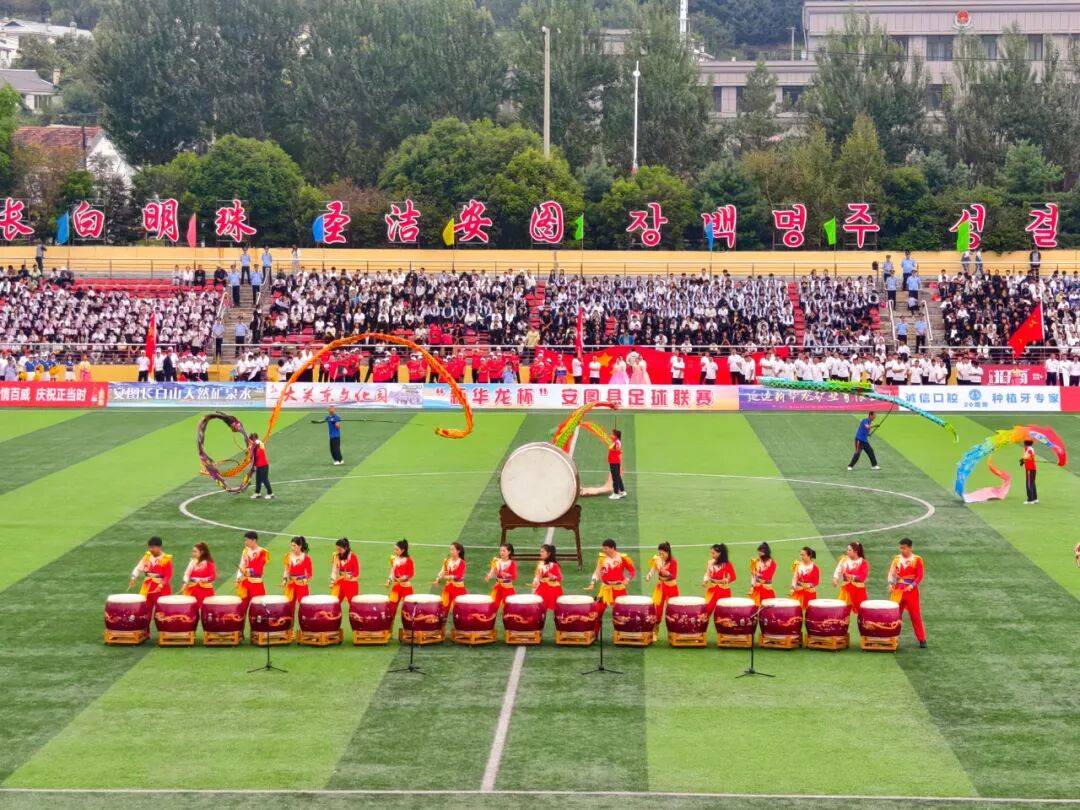 赛事期间,安图县相关部门组织了34户企业入驻赛场“供销集市”开展展销,涵盖农特产品、日用品等品类,累计销售额达3.31万元,既丰富观赛消费选择,又助力本土产品推广;开幕式及关键场次,“长鼓舞”“象帽舞”“牙拍舞”等非遗节目轮番上演,《龙腾盛世》《欢鼓韵响颂党恩》等由300余人次参演的节目,让球迷在观赛之余感受延边民俗魅力;12支代表队的中场特色表演,将乡镇特色文化与赛事互动结合,成为“安超”独有的“文化记忆点”,进一步提升了赛事的文化内涵和吸引力。