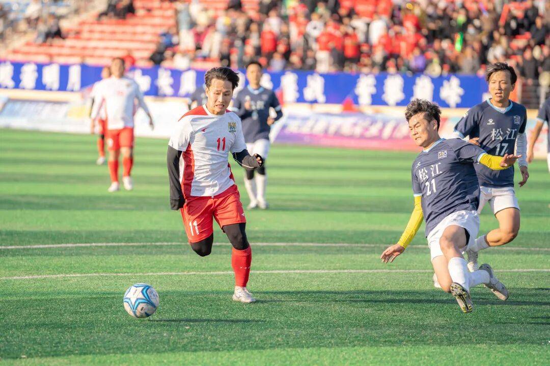 决赛伊始,双方球员迅速进入竞技状态,攻防转换节奏极为迅速。开场第6分钟,长兴街道队便抓住了一次绝佳的进攻机会。中场球员敏锐地捕捉到对方防线的空当,一记精准的直塞球送到前场,19号球员张岩精准前插,在区附近果断起脚,一记势大力沉的劲射破门,打破了场上的僵局,为长兴街道队先拔头筹。落后的松江镇队迅速组织反攻。第10分钟,松江镇队前锋队员接球后突出禁区,面对出击的守门员将球打高,错失扳平比分的良机。比赛进行到第39分钟,长兴街道队边路球员突破后精准将球送入禁区,插上的球员突施冷箭造成对方队门将脱手,跟进的14号球员薛伟华补射将球打进,将比分改写为2比0,进一步扩大了领先优势。